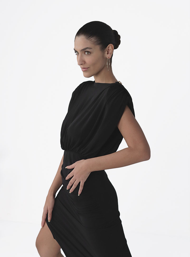 is a daring reversible dress and a top-to-toe design that seamlessly transforms from day to night
